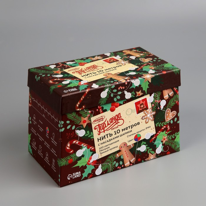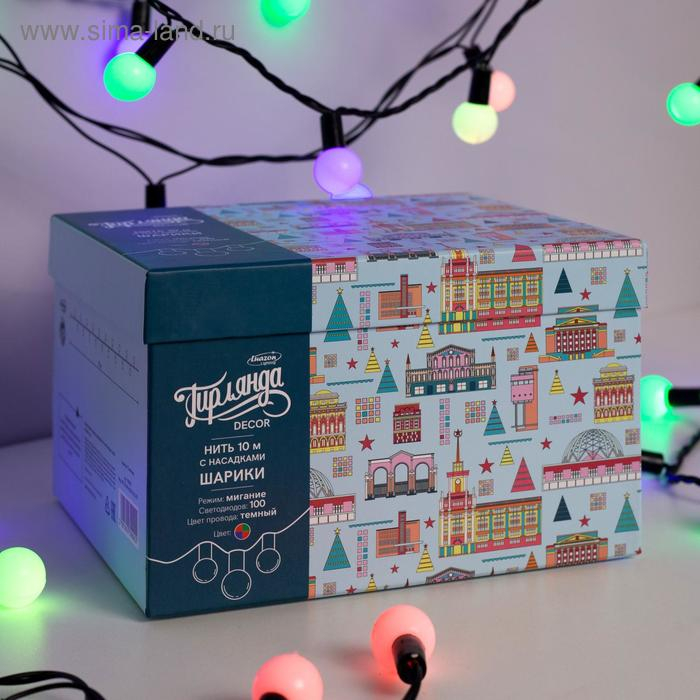 Гирлянда «Нить» 10 м с насадками «Шарики 2.5 см», IP44, тёмная нить, 100 LED, свечение мульти (RG/RB), мигание, 220 В