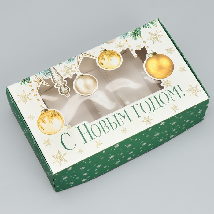 Коробка для эклеров с вкладышами - 5 шт «С Новым Годом!», 25,2 х 15 х 7 см, Новый год