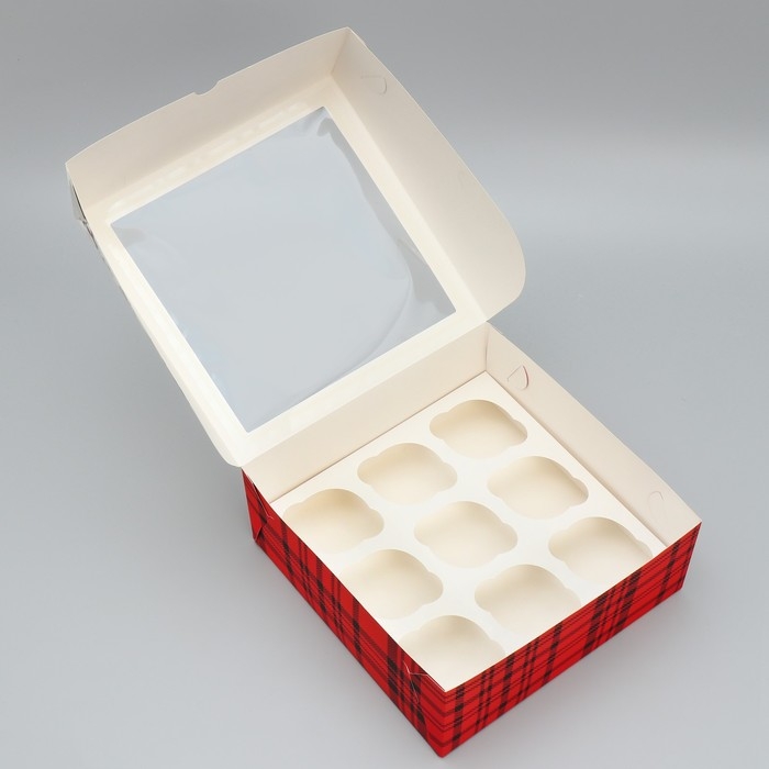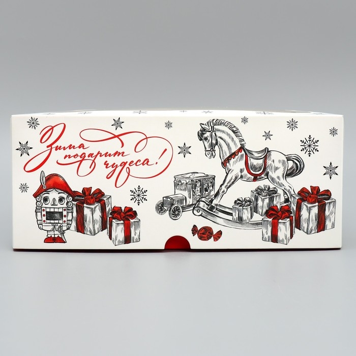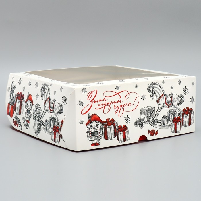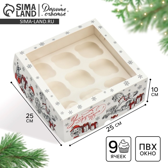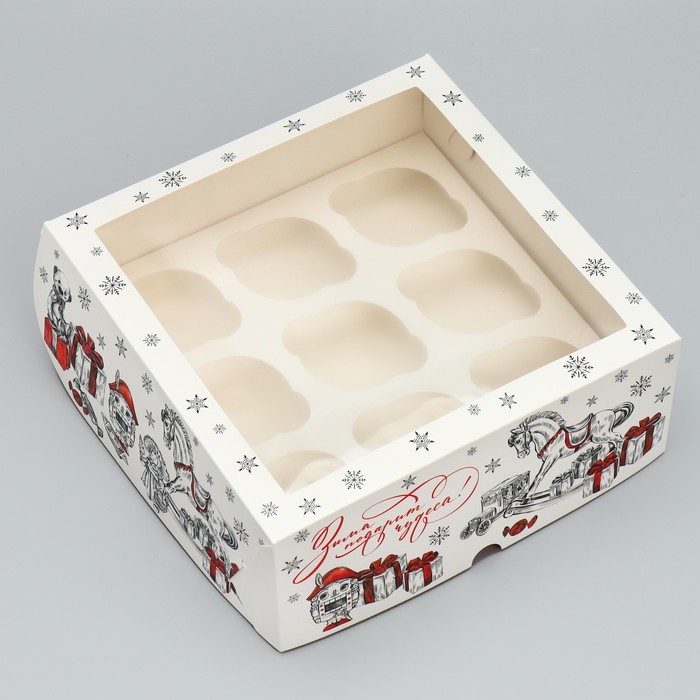 Коробка складная на 9 капкейков с окном «Зима подарит чудеса!», 25 х 25 х 10 см, Новый год