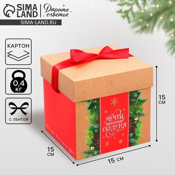 Коробка подарочная новогодняя складная «Мечты обязательно сбудутся», 15 х 15 х 15 см, Новый год