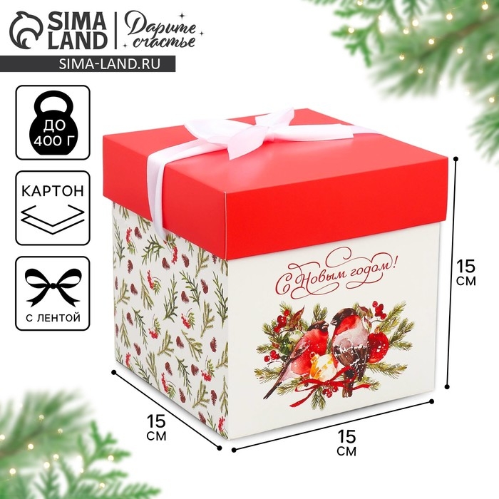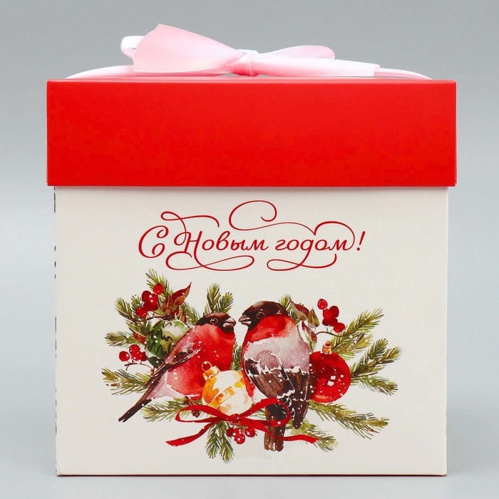 Коробка подарочная новогодняя складная «Снегири», 15 х 15 х 15 см, Новый год