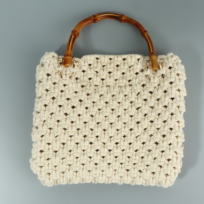 Ручка для сумки, бамбук, с полукольцами, 13,5 × 10,5 см, цвет бежевый/золотой