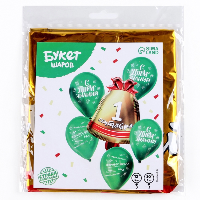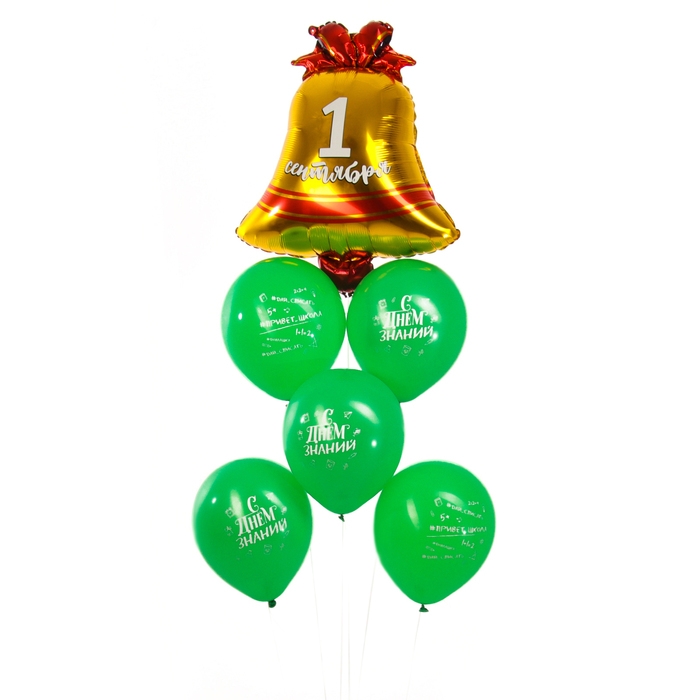 Набор воздушных шаров «Колокольчик 1 сентября», зеленый, латекс, фольга, 6 шт.