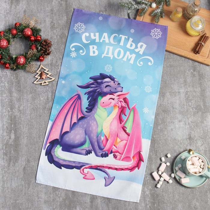 Полотенце Этель "Счастья в дом" 40х73 см, 100% хл, саржа 190 г/м2