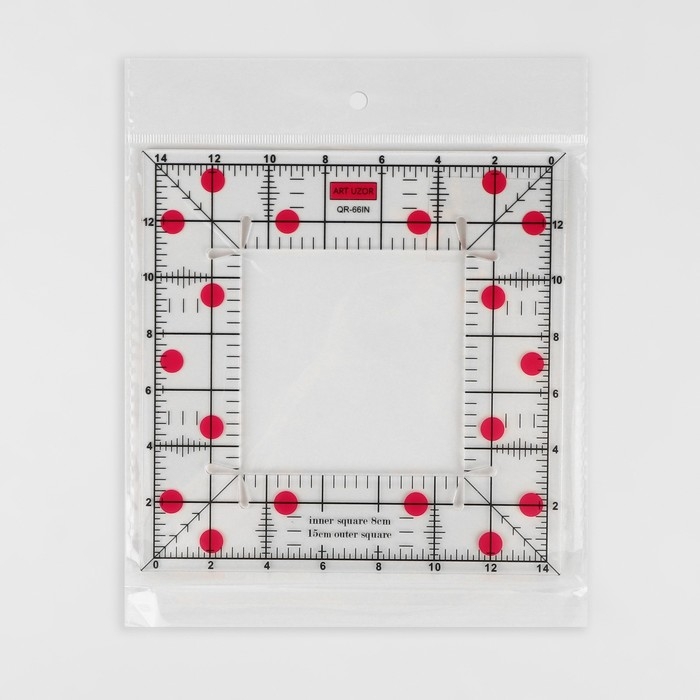 Линейка для квилтинга и пэчворка, с отверстием, 15 × 15 см, толщина 3 мм, цвет прозрачный/розовый