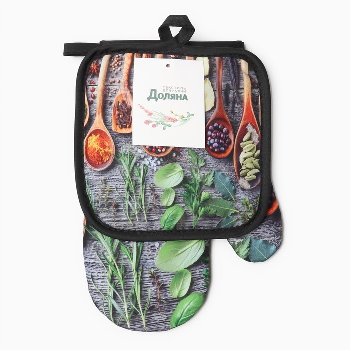 Куханный набор 2 пр. Доляна Прованс прихватка 17*17 см, варежка 26*16 см,100% п/э