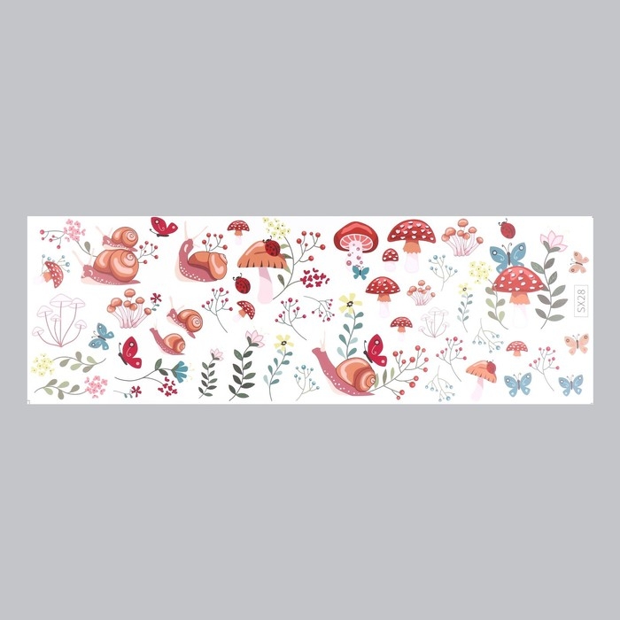Наклейка пластик интерьерная цветная "Улитки и грибочки" 30х90 см