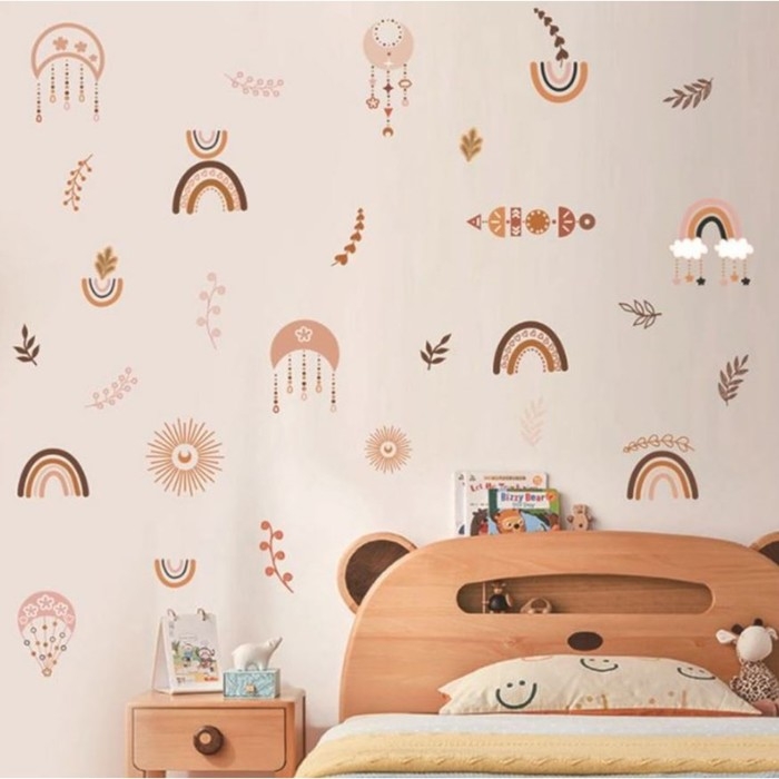 Наклейка пластик интерьерная цветная "Пастель: радуга и солнышки" 30х90 см