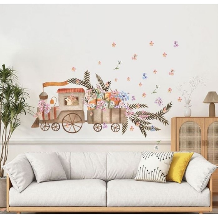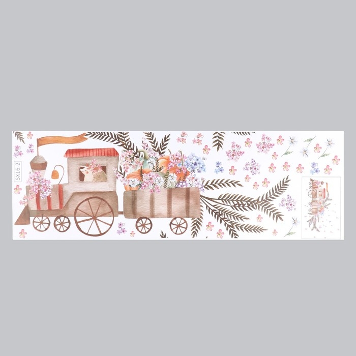 Наклейка пластик интерьерная цветная "Ежик-машинист с цветами" набор 2 листа 30х90 см