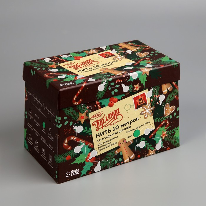 Гирлянда «Нить» 10 м с насадками «Шарики 2.5 см», IP44, тёмная нить, 100 LED, свечение зелёное, 8 режимов, 220 В