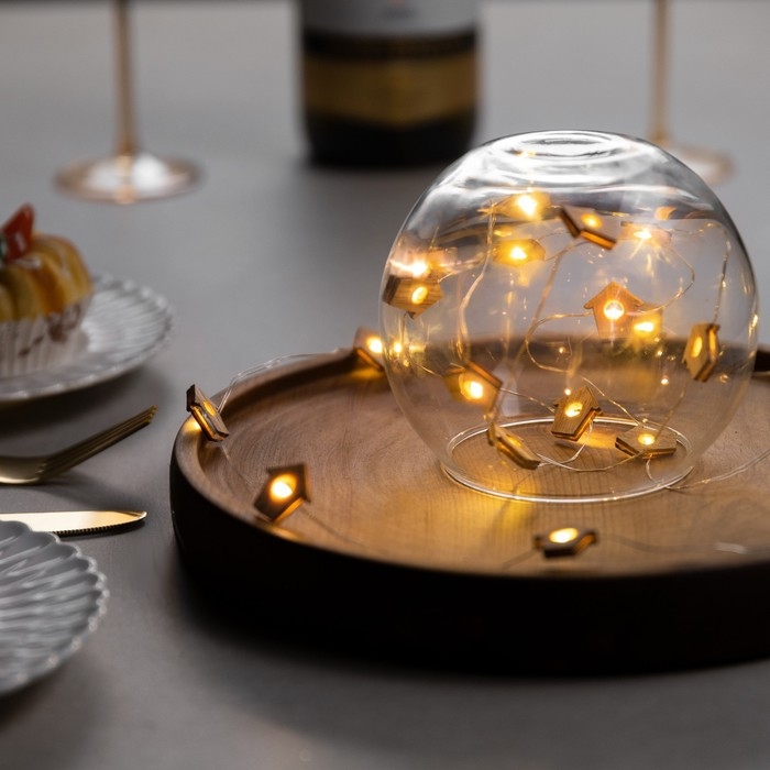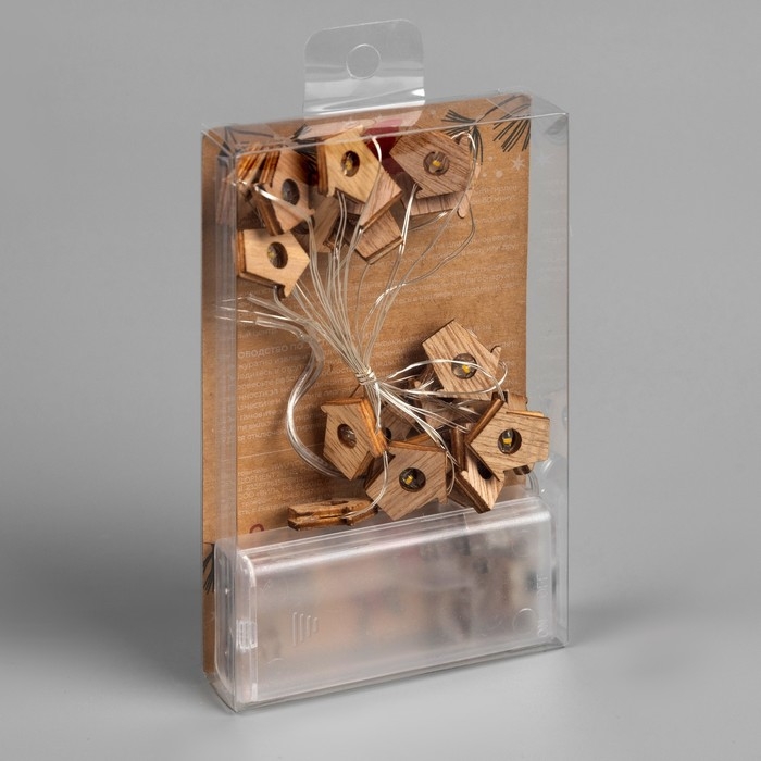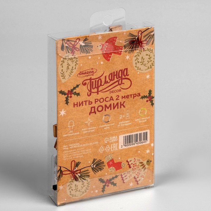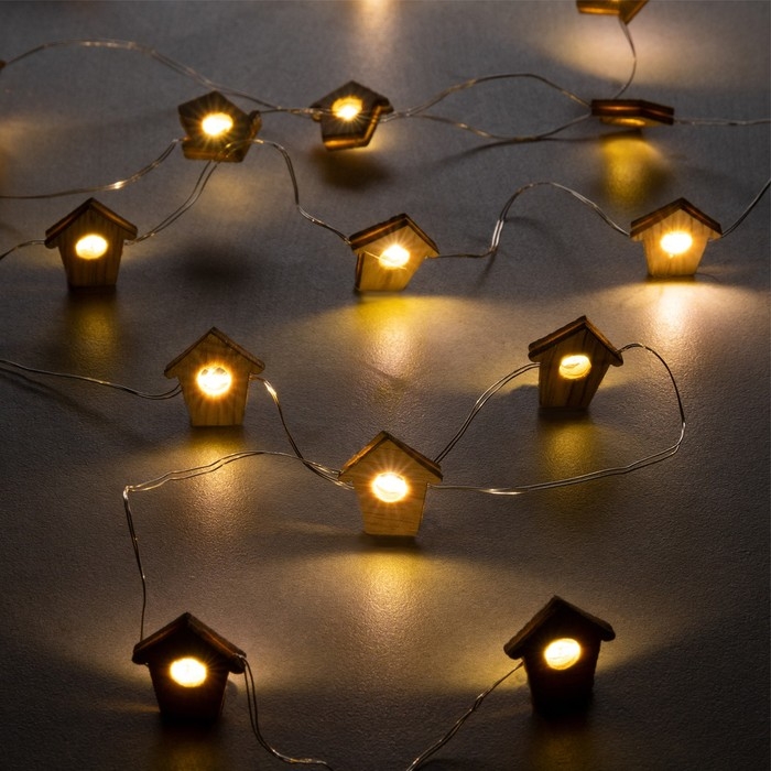Гирлянда «Нить» 2 м роса с насадками «Домик», IP20, серебристая нить, 20 LED, батарейки ААх2 (нет в комплекте), свечение тёплое белое