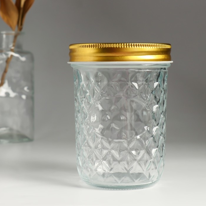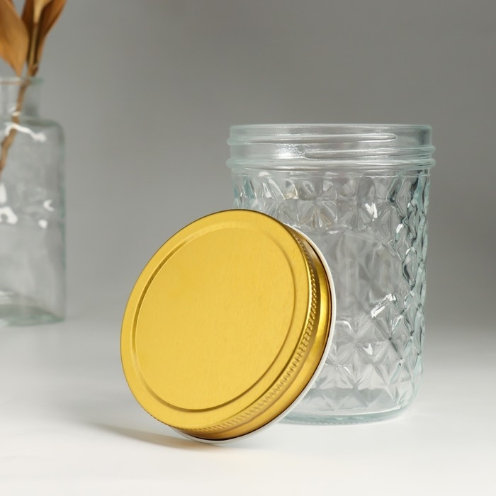 Банка для свечей стекло с крышкой "Ромбы" прозрачная 500 мл 8,5х8,5х12 см