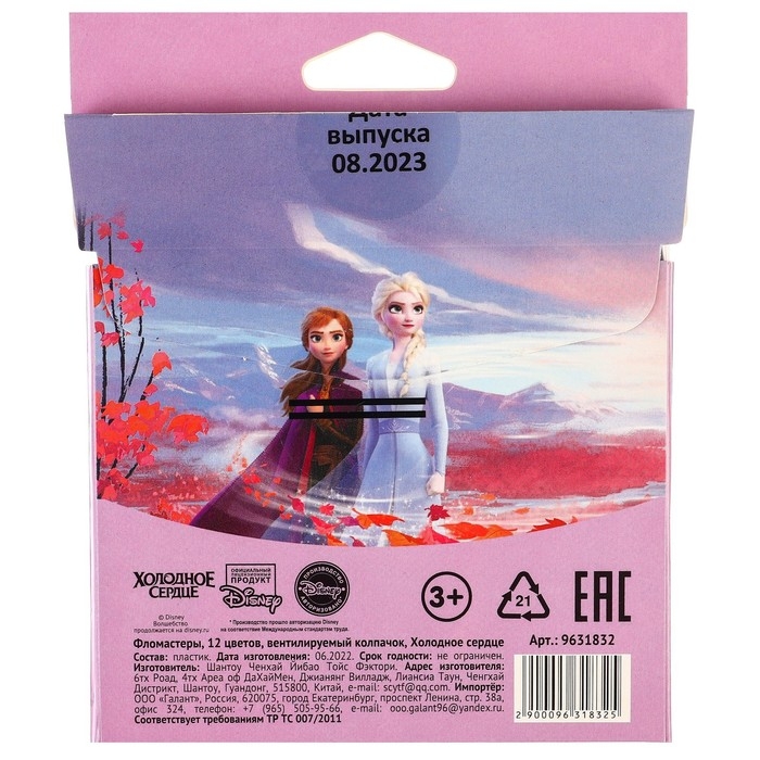 Фломастеры "Холодное сердце", 12 цветов, вентилируемый колпачок