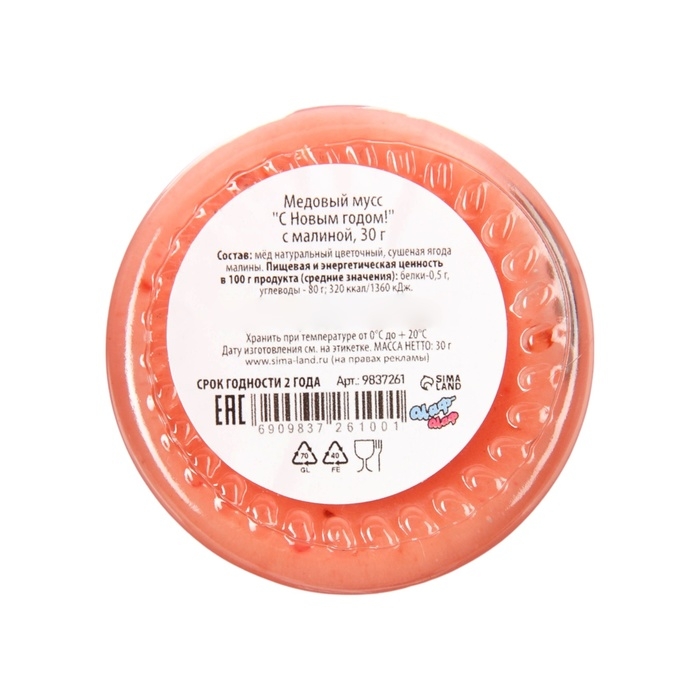 Новый год. Медовый мусс "Весёлого Нового года", с малиной, 30 г