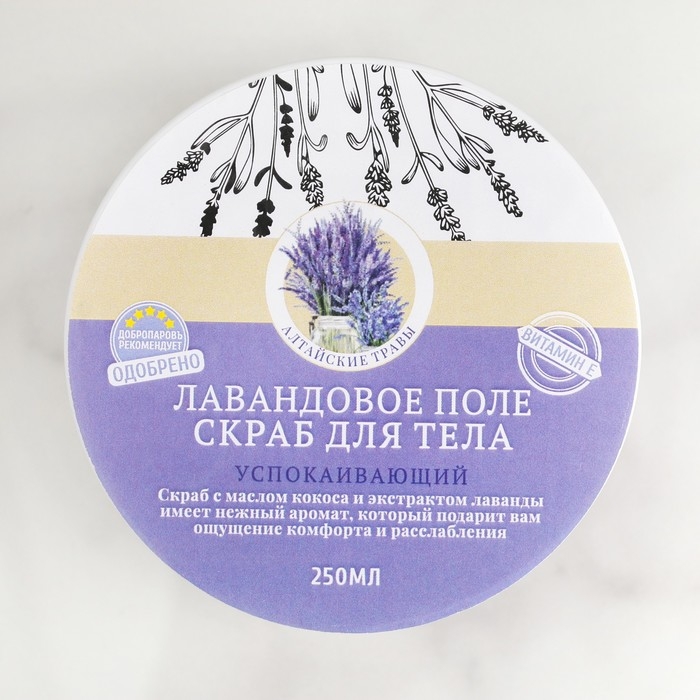 Соляной скраб для тела "Лаванда" с алтайскими травами, успокаивающий 250 мл