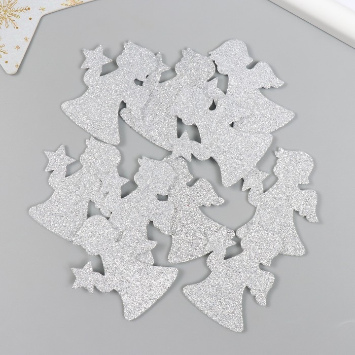 Декор "Ангелочек" серебро 5 см набор 10 шт фоам глиттер