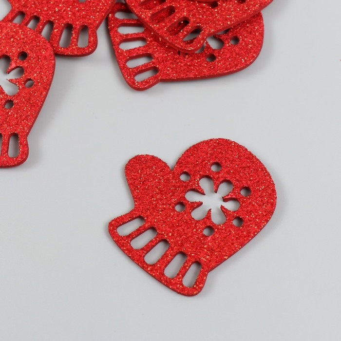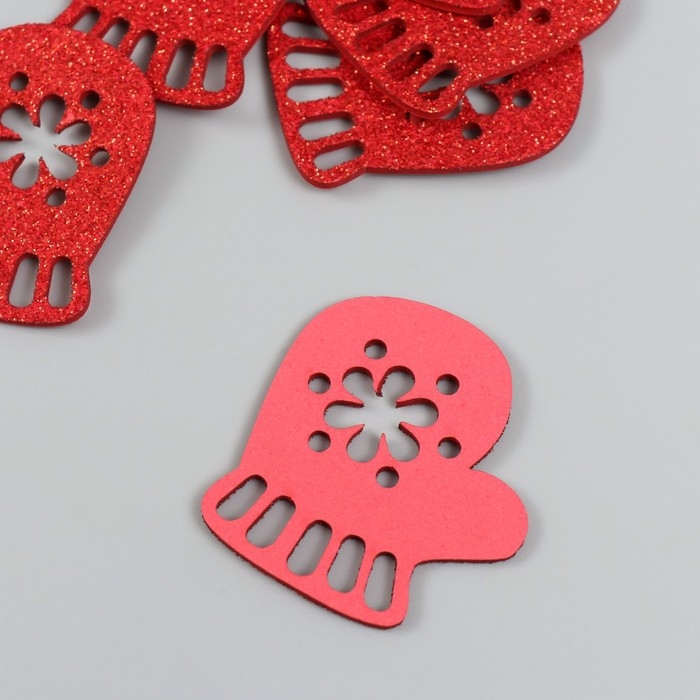 Декор "Варежка" красная 5 см набор 6 шт фоам глиттер