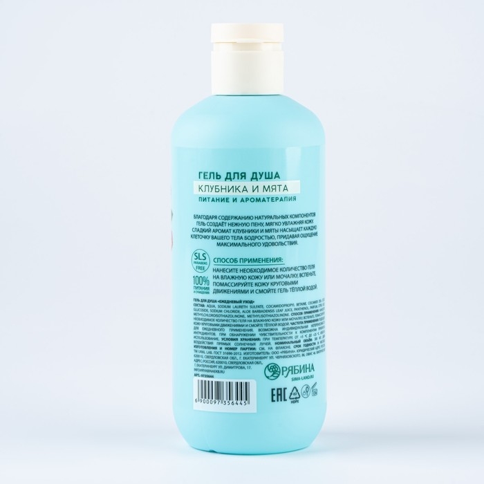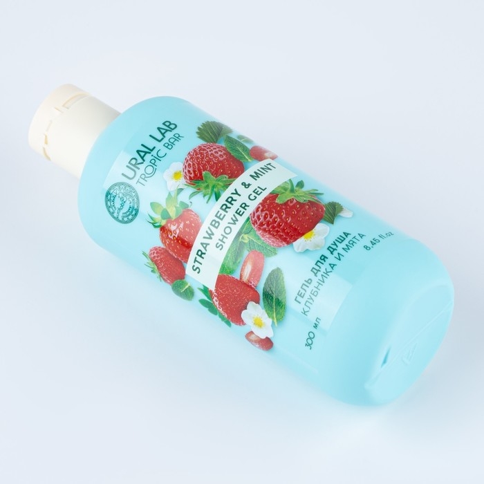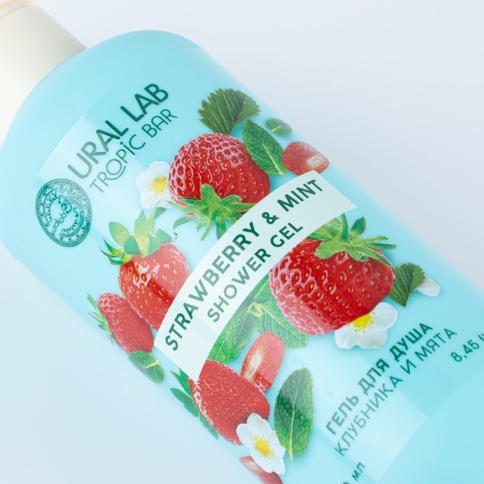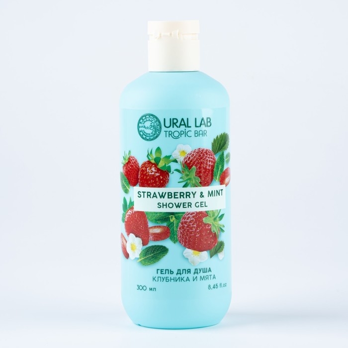 Гель для душа, питание и ароматерапия, 300 мл, аромат клубники и мяты, TROPIC BAR by URAL LAB