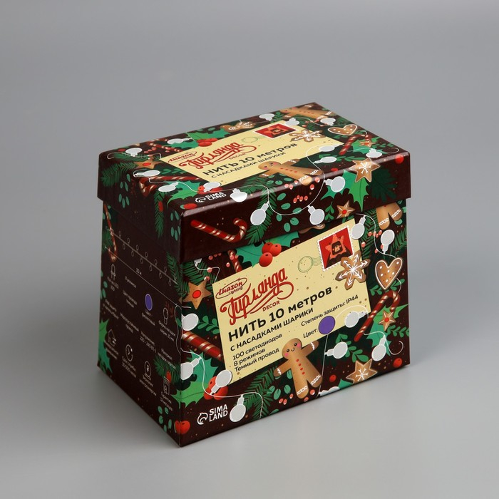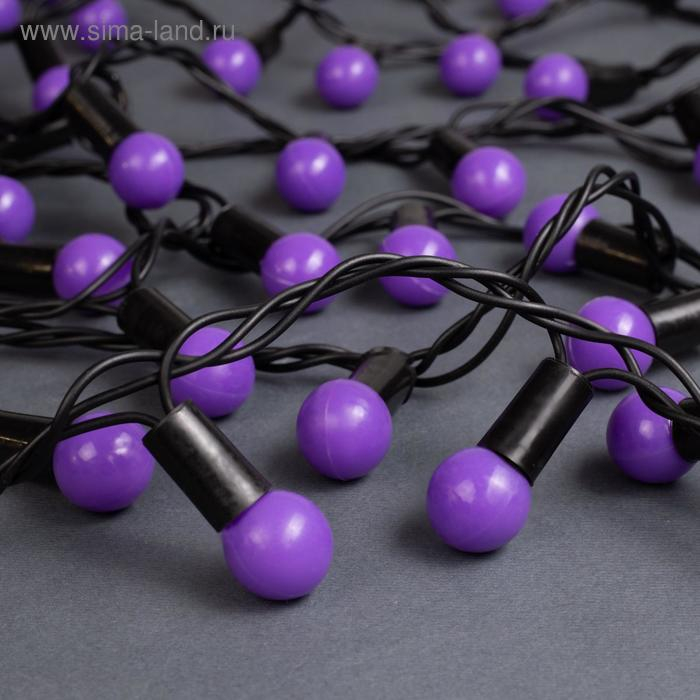 Гирлянда «Нить» 10 м с насадками «Шарики 1.5 см», IP44, тёмная нить, 100 LED, свечение фиолетовое, 8 режимов, 220 В