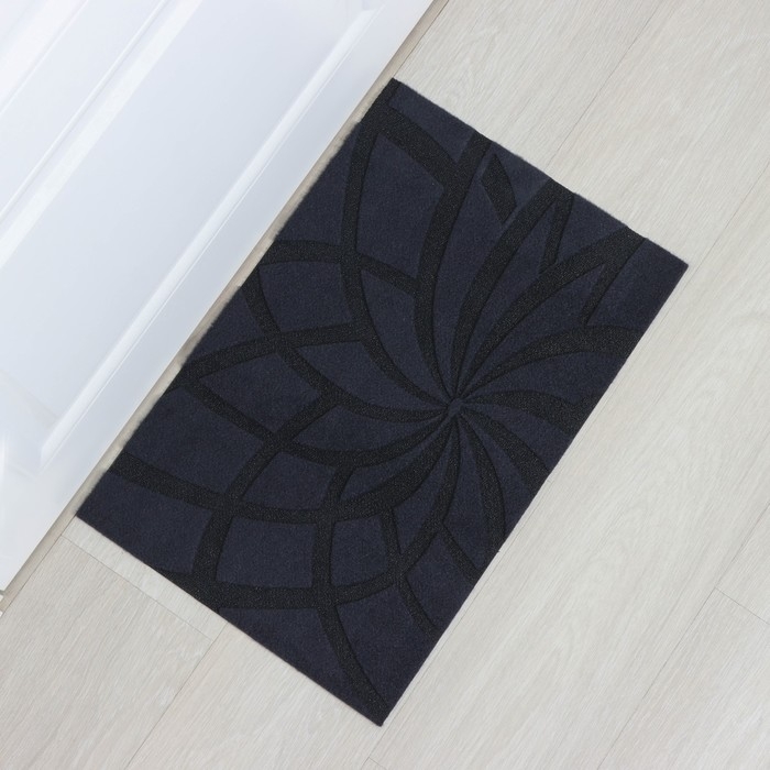 Коврик придверный узорный Доляна «Welcome. Вензель», 45×75 см, цвет чёрный