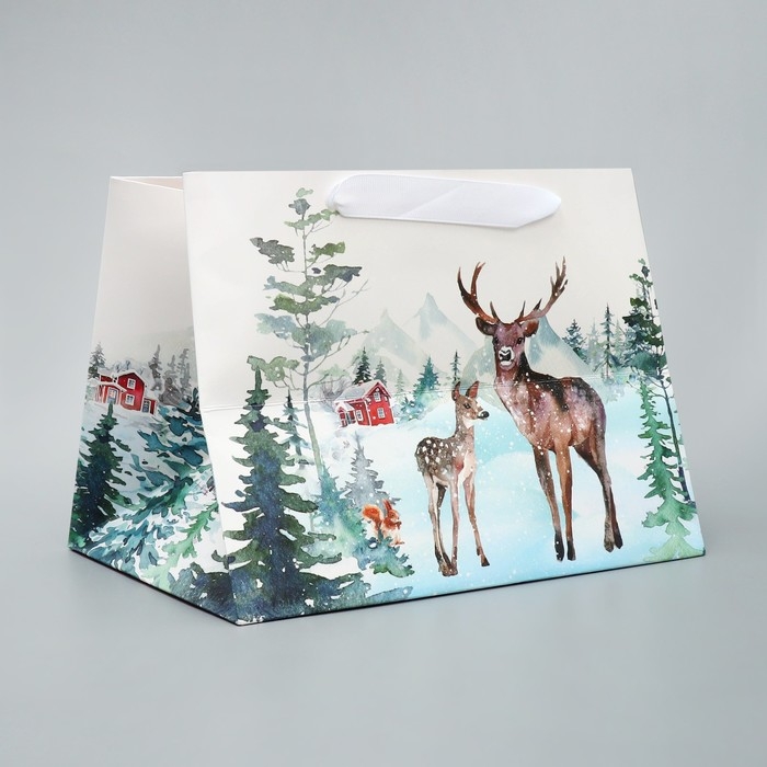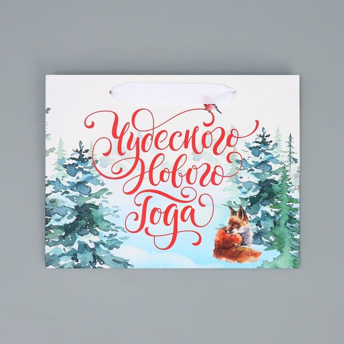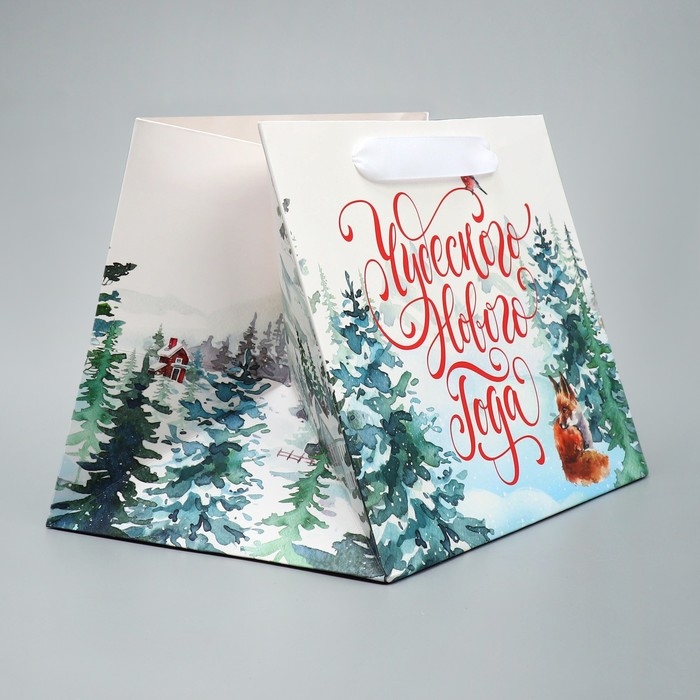 Пакет подарочный новогодний с широким дном «Новогодние чудеса», 25 х 19 х 18 см, Новый год