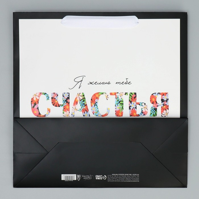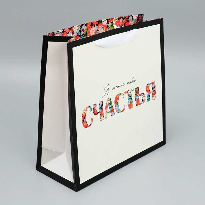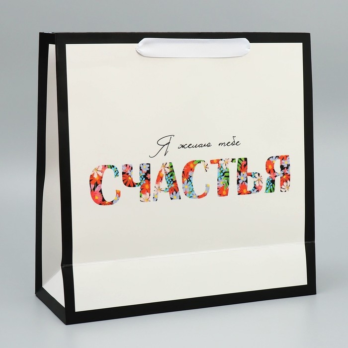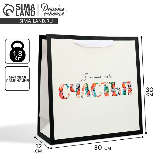 Пакет подарочный ламинированный квадратный, упаковка, Happines, 30 х 30 х 12 см