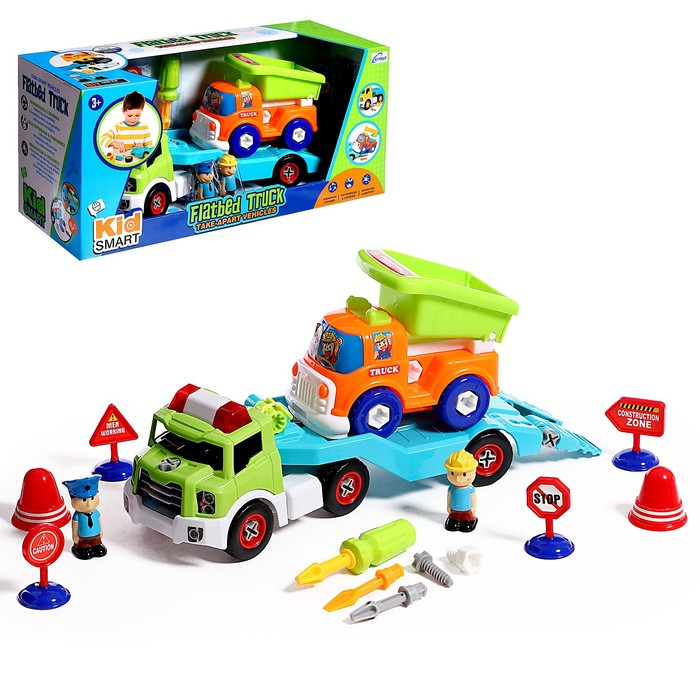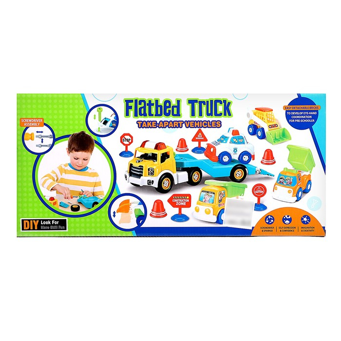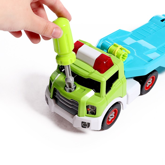 Конструктор винтовой «Эвакуатор с машинкой», с отвёрткой и насадкой + знаки