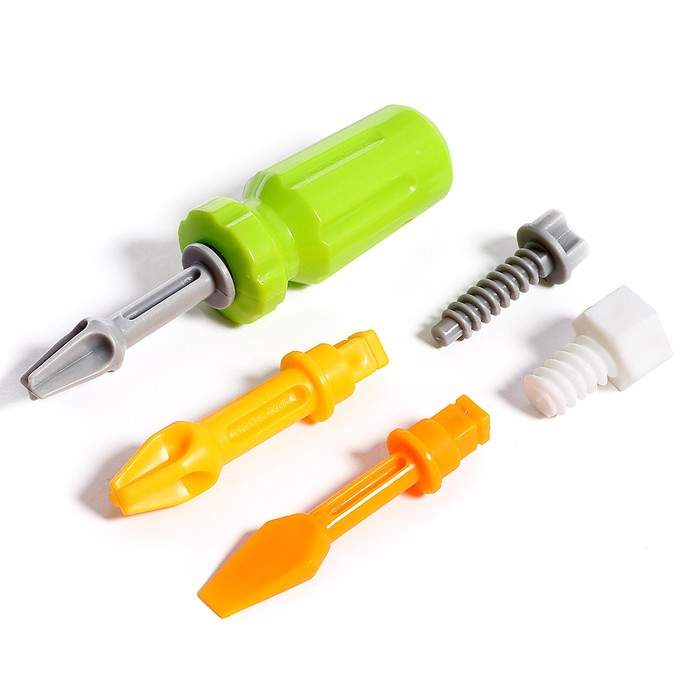 Ребёнок с помощью отверток, имеющихся в наборе, сможет сам собрать игрушку.