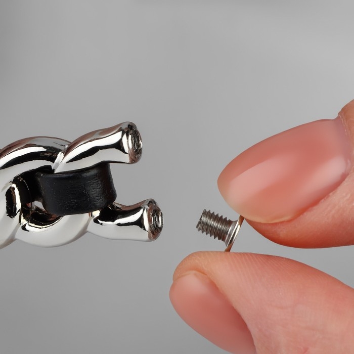 Ручка для сумки, металлическая, с винтами для крепления, 12,8 × 6,5 см, цвет серебряный/чёрный