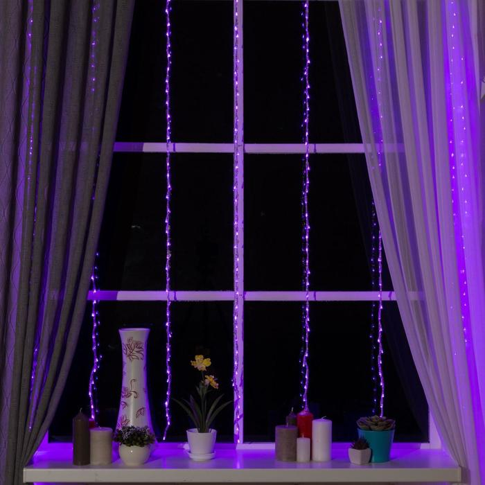Гирлянда «Водопад» 2 × 1.5 м, IP20, прозрачная нить, 400 LED, свечение фиолетовое, 8 режимов, 220 В