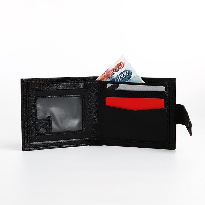 Портмоне мужское на магните, отдел для купюр, для карт, для монет, цвет чёрный