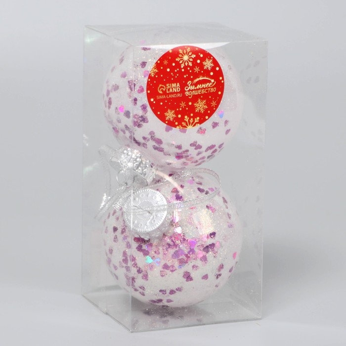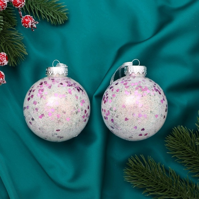 Набор шаров пластик d-8 см, 2 шт "Сияние" сердца, перламутр