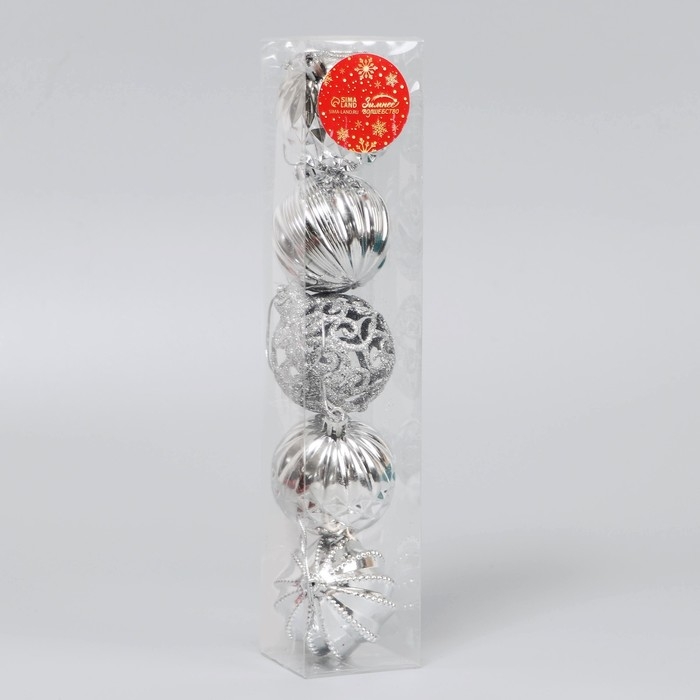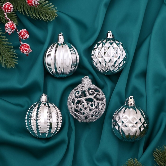 Набор шаров пластик d-5,5 см, 5 шт "Карнавал" ассорти, серебро