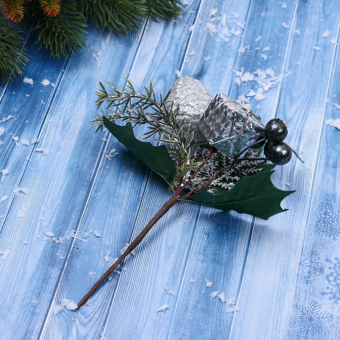 Декор "Зимние грезы" ягоды драгоценные камни шишка, 17 см