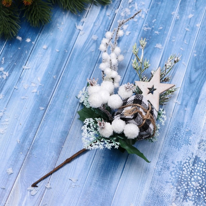 Декор "Зимние грезы" подарок в клетку звезда ягоды, 21 см