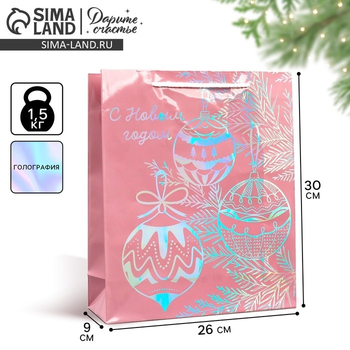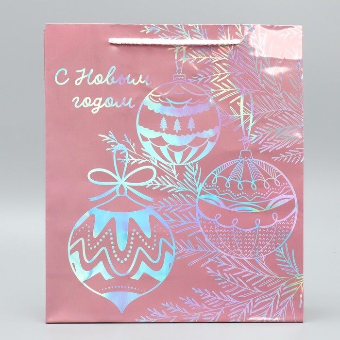 Пакет голографический «Игрушки», M 26 х 30 х 9 см, Новый год