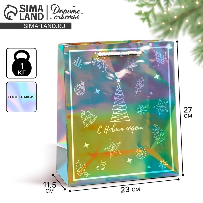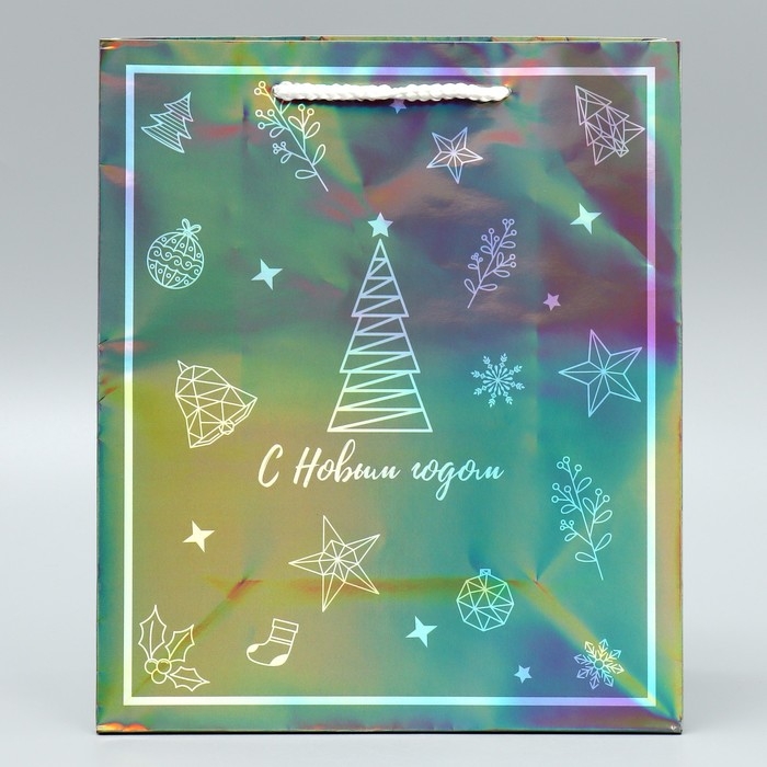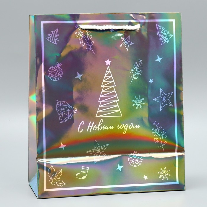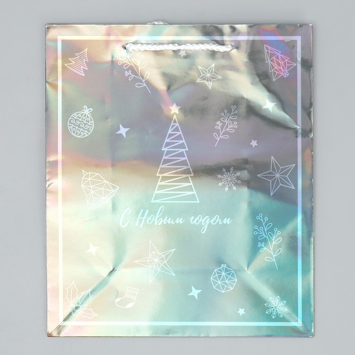 Пакет голографический «Подарочек», ML 23 х 27 х 11.5 см, Новый год