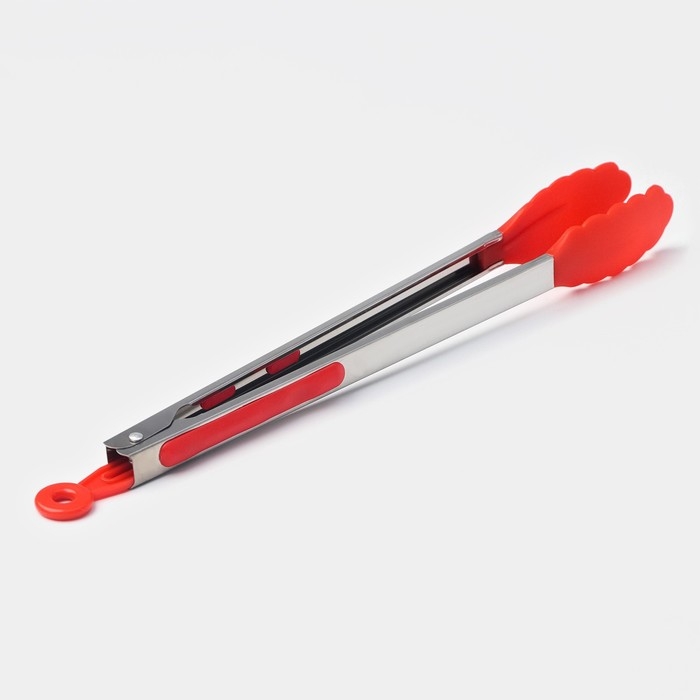 Щипцы кухонные Доляна «Лист», 35×3,5 см, цвет красный