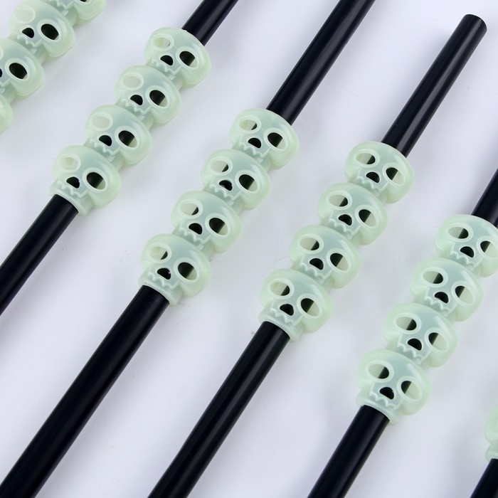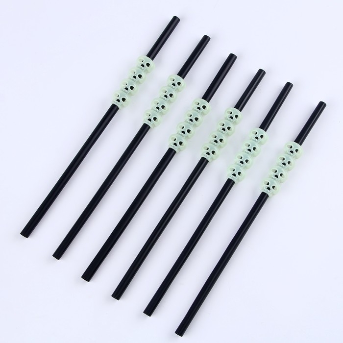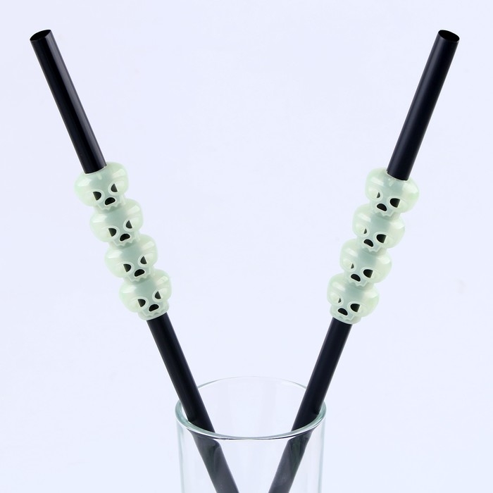 Трубочки для коктейля «Череп», набор 6 шт., светится в темноте