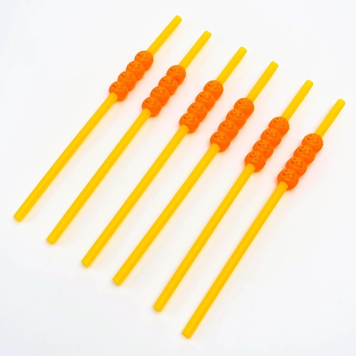 Трубочки для коктейля «Тыква», цвет оранжевый, набор 6 шт.