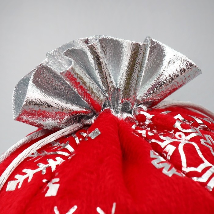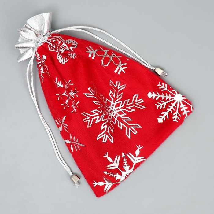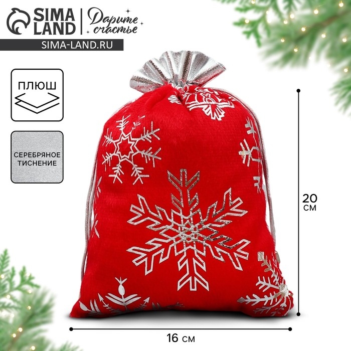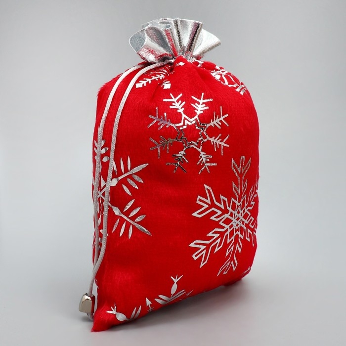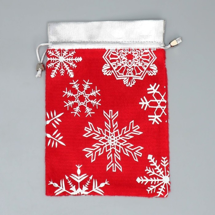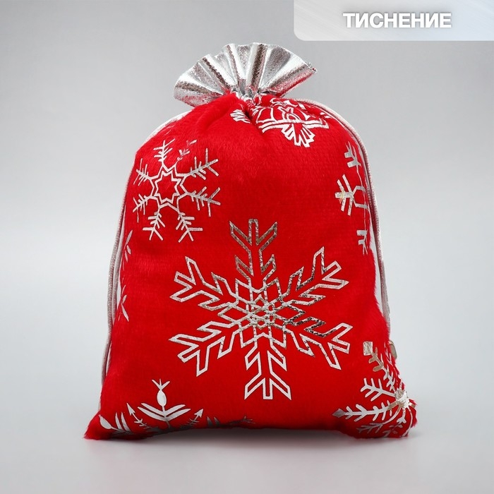 Мешочек подарочный плюш «Мешок Деда Мороза», снежинки, тиснение, 16 х 24 см +/- 1.5 см, Новый год