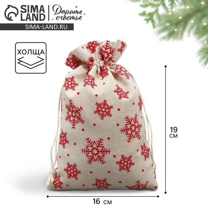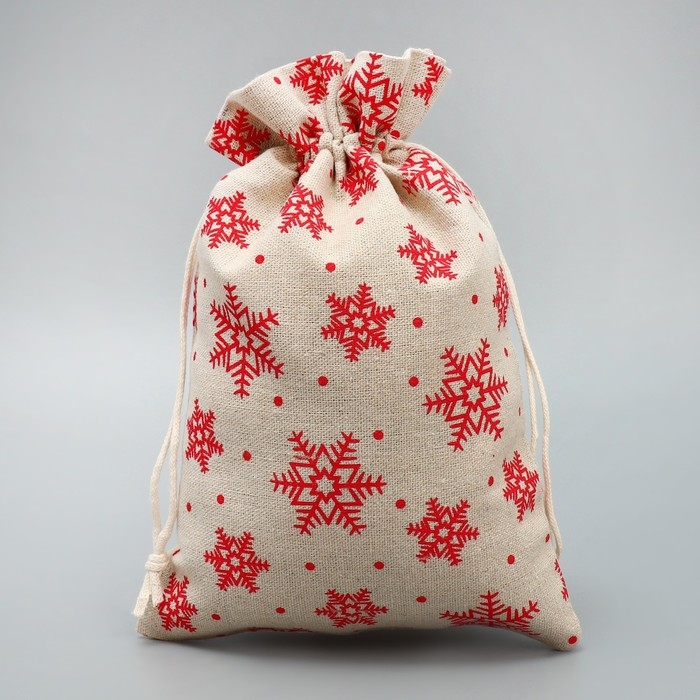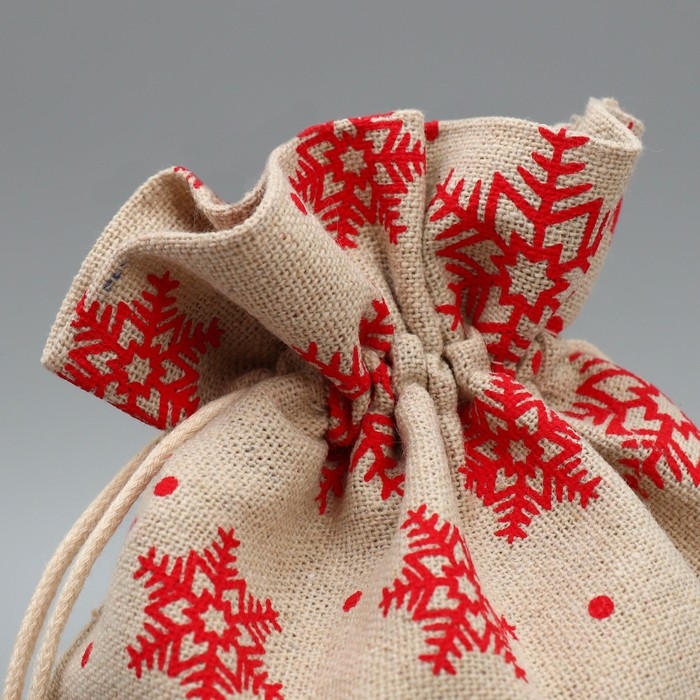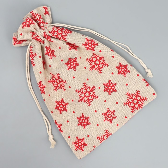 Мешочек подарочный холща «Дарю от всей души», снежинки, холща,16 х 24 см +/- 1.5 см, Новый год