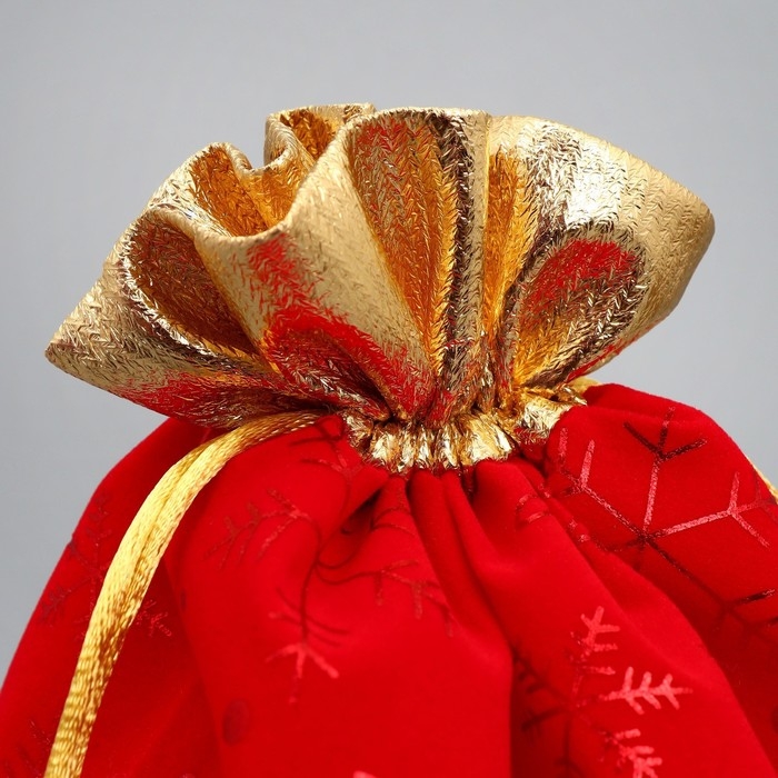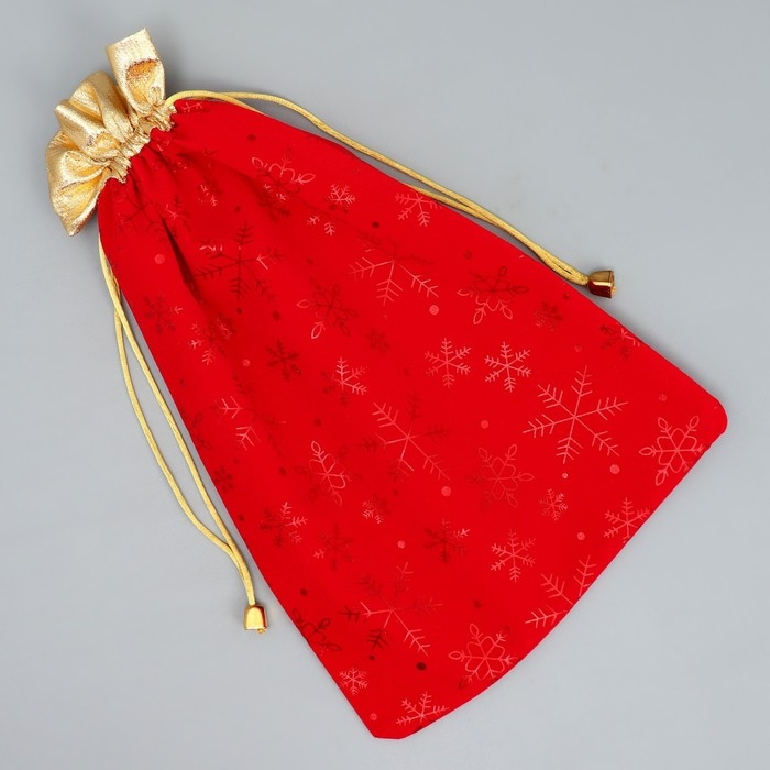 Мешок для подарков «Дед Мороз и снежинки», на завязках, 29 × 22 см