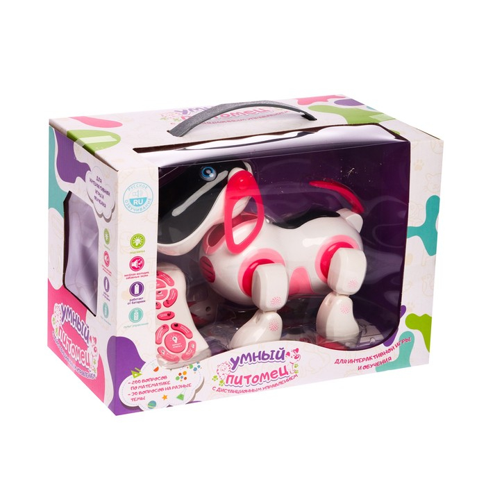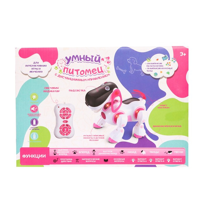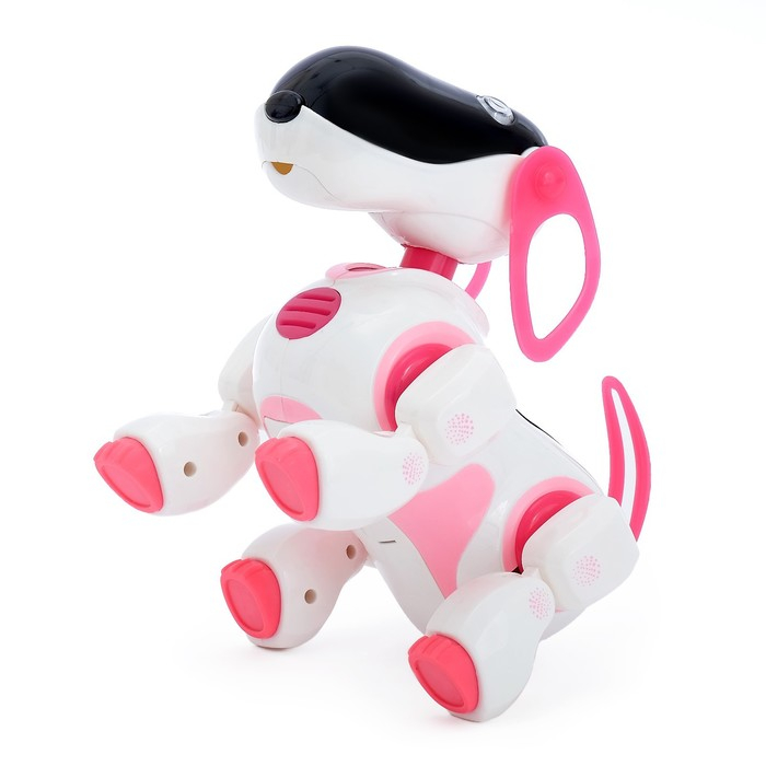 Робот собака «Ки-Ки», программируемый, на пульте управления, интерактивный: звук, свет, танцующий, музыкальный, на батарейках, на русском языке, розовый