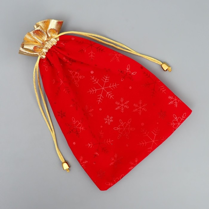 Мешок для подарков «Дед Мороз и снежинки», на завязках, 29 × 22 см
