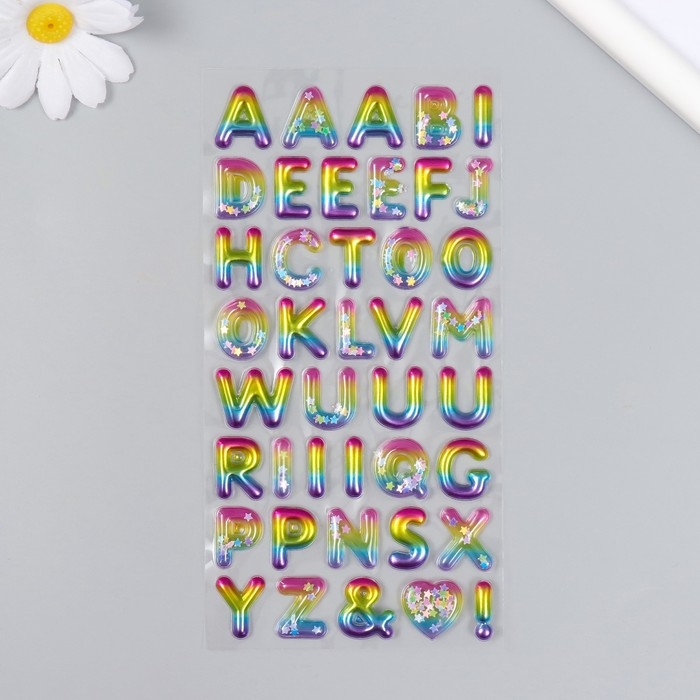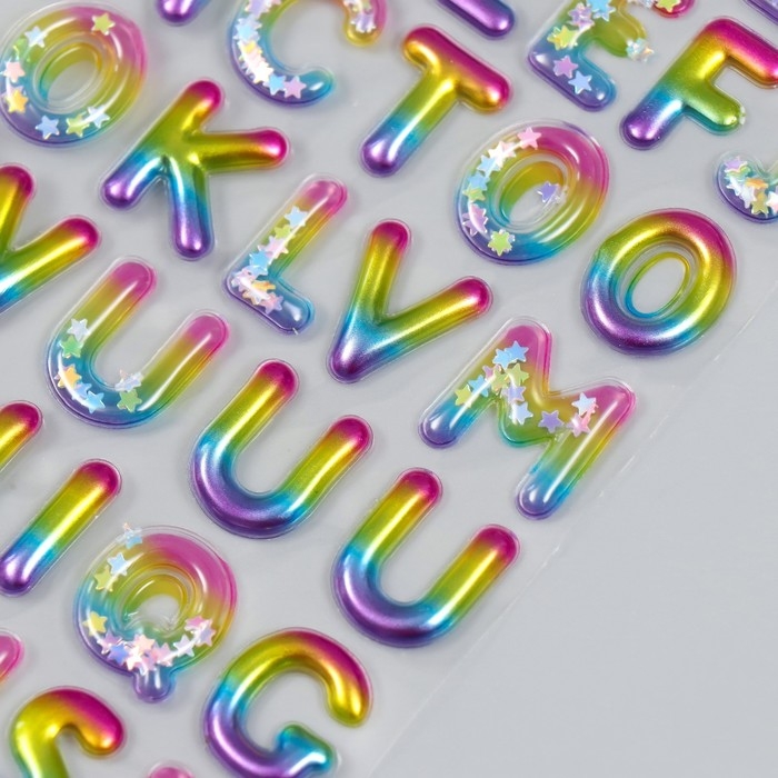 Наклейка пластик "Английский алфавит" с глиттером МИКС 9х20,5 см