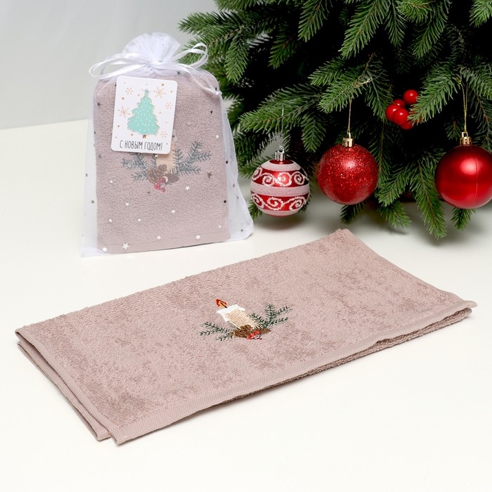 Полотенце махровое "Рождественская свеча" 30х60 см, 100% хлопок, 340 г/м2