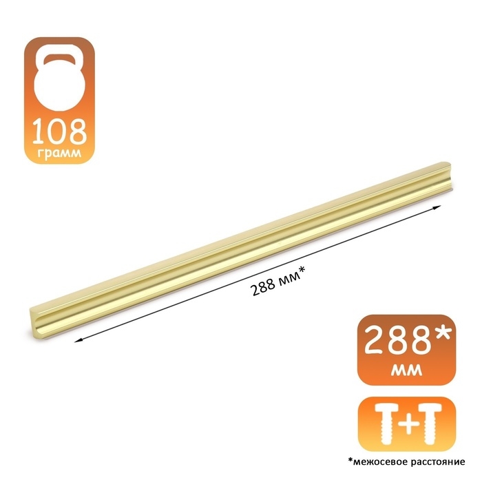 Ручка-скоба CAPPIO RSC022, алюминий, м/о 288 мм, цвет сатиновое золото
