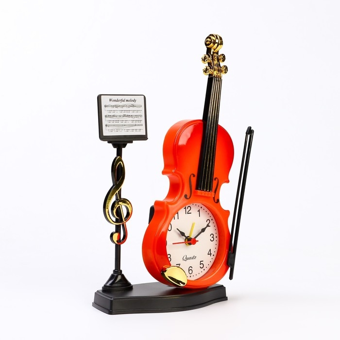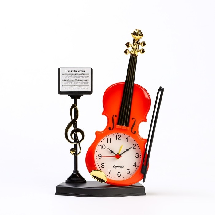 Часы - будильник настольные "Скрипка с пюпитром", дискретный ход, d-6.5 см, 11.6 х 21 см, АА
