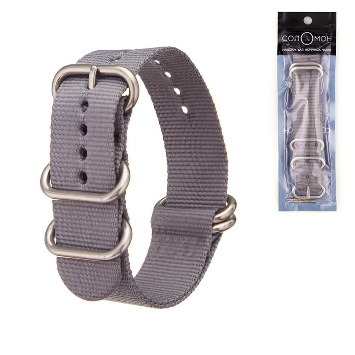 Ремешок для часов "Соломон", 20 мм, l-27 см, серый